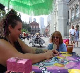 Cafe Du Monde - Mmmm, Beignes. Meagan & Kristi on Cat's Meow balcony Kristi getting her Tarot read on Jackson Square